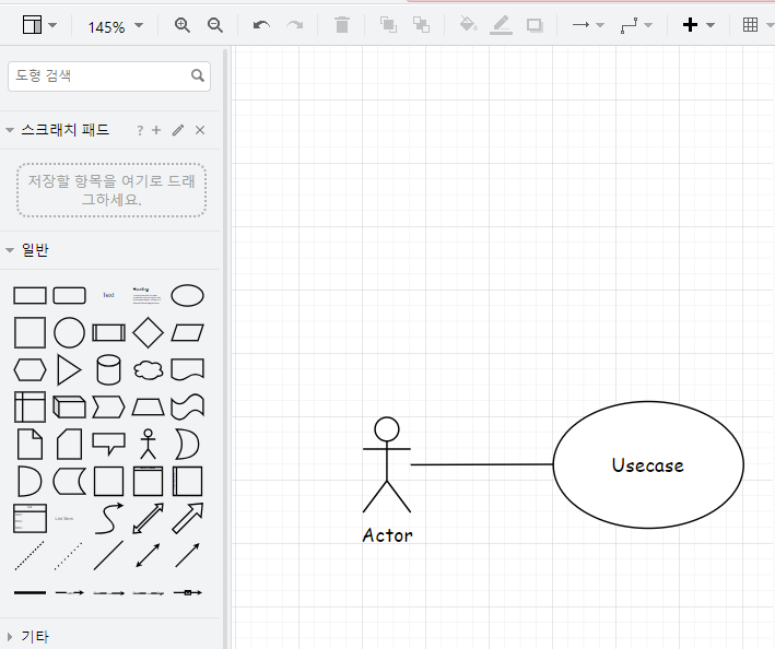 3. 확장 기능 유스케이스를 기본 유스케이스로 화살표를 점선으로 연결한다.