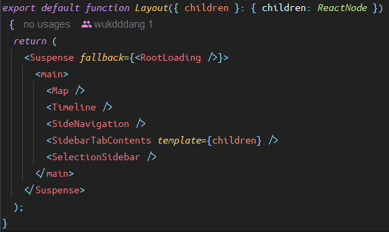 엥? 첫 번째 사이드바도 두 번째 사이드바처럼 인터렉티브하게 동작하는 데 왜 서버 사이드 렌더링이 되었나요? 라고 물으실거 같아서, 첫 번째 사이드바는 각 페이지에 바인딩된 컴포넌트여서 가능했다고 말씀드릴 수 있겠습니다. 좀 더 자세히 설명드리면, Next.js의 page / layout.tsx 컴포넌트에서 props로 받을 수 있는 children을 이용했기 때문에, url에 따라 다른 API를 호출을 하고 서버에서 HTML을 렌더링 해줄 수 있는 첫 번째 사이드바는 비교적 쉽게 해결할 수 있었던 것입니다.