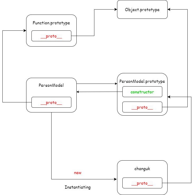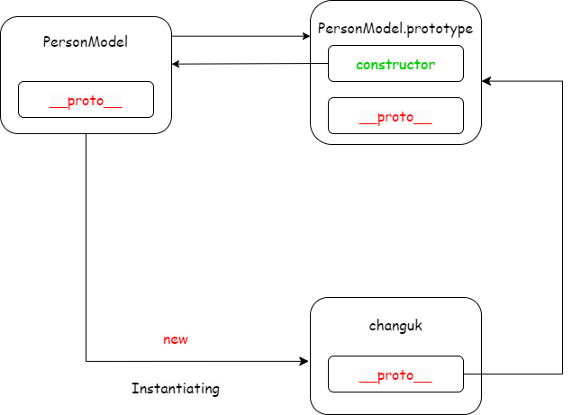 IdolModel 객체를 new 키워드로 인스턴스화하여 생성된 yuJin 객체는 자동으로 생성된 __proto__ 접근자 프로퍼티를 갖게 되고, __proto__는 IdolModel.prototype을 가리키게 됩니다.